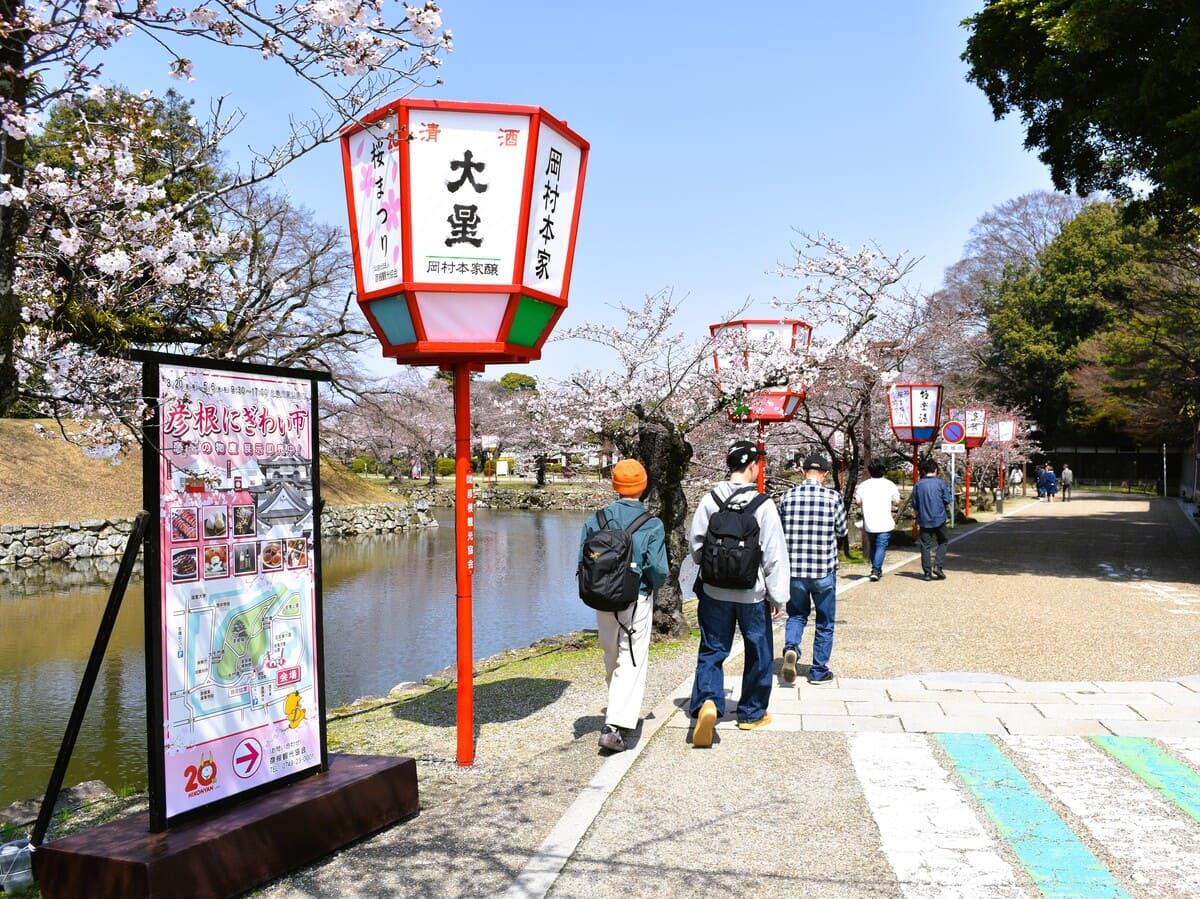 彦根城一帯で現在、「彦根城桜まつり」が行われている。