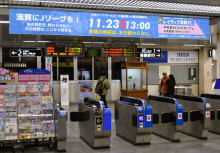 11月18日には、レイラック滋賀の選手2人と市職員たちが彦根駅前でチラシを配りながら、来場を呼びかけた。
