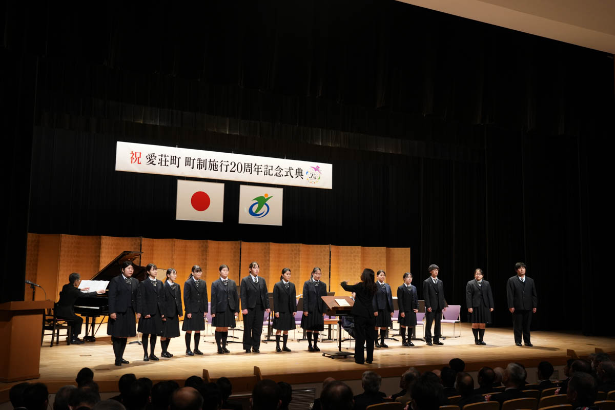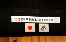 「愛荘町町制施行20周年記念式典」が11月23日、秦荘ハーティーセンター(愛荘町島川)で開かれた。