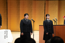 愛荘町は2006(平成18)年2月13日に旧愛知川町と旧秦荘町が合併し誕生し、来年で20周年を迎える。式典には有村國知町長や森野隆議会議長をはじめ、三日月大造滋賀県知事や上野賢一郎厚生労働大臣、有村治子参議院議員や近隣市町の首長などの来賓、関係者、住民が参加した。