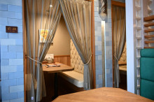店内は、個室やソファ席やテーブル席など合わせて151席を用意。バリから直接仕入れたという家具や雑貨を使ったインテリアでリゾート空間を再現している。