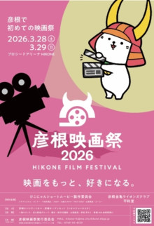 「映画のまち・ひこね」として地域の魅力を発信するイベント「彦根映画祭2026」が3月28日・29日、プロシードアリーナHIKONE(彦根市小泉町)で初めて開催される。主催は市や市内団体で組織する彦根映画祭実行委員会。