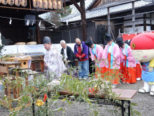 彦根の天満宮北野神社(彦根市馬場)で1月9日・10日、商売繁盛や家内安全などを願う「十日戎(えびす)」が行われ、餅まきなどの神事に多くの参拝客が訪れた。