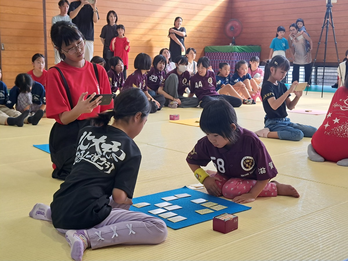 「第1回五色百人一首彦根大会」が9月28日、彦根市武道場(彦根市京町2)で開催され、約60人が参加した。