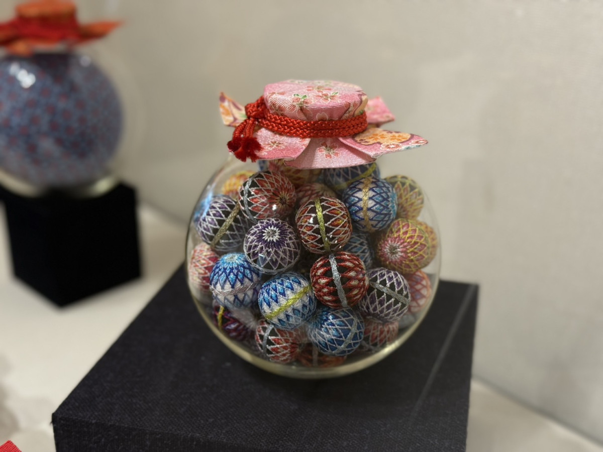 愛荘町の伝統工芸品である「びん細工手まり」を展示する「開館25周年記念 びんてまり展」が10月5日、愛荘町立愛知川びんてまりの館(愛荘町市)で始まった。