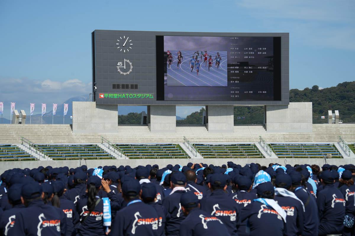 第79回国民スポーツ大会「わたSHIGA輝く国スポ2025」の総合閉会式が10月8日、平和堂HATOスタジアム(彦根市松原町)で開催された。