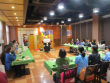 彦根経済新聞のインタビューに答えるひこにゃん=ご当地キャラ博