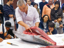三九三九ひこねマルシェでのマグロの解体ショーの様子