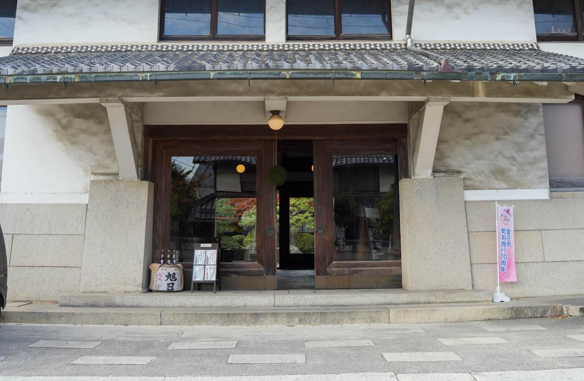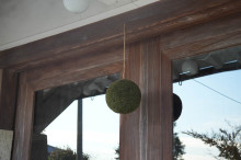 日本酒の蔵元「藤居本家」(愛荘町長野)が11月20日、新酒ができたことを知らせる緑色の「杉玉(すぎたま)」を軒先に掲げた。