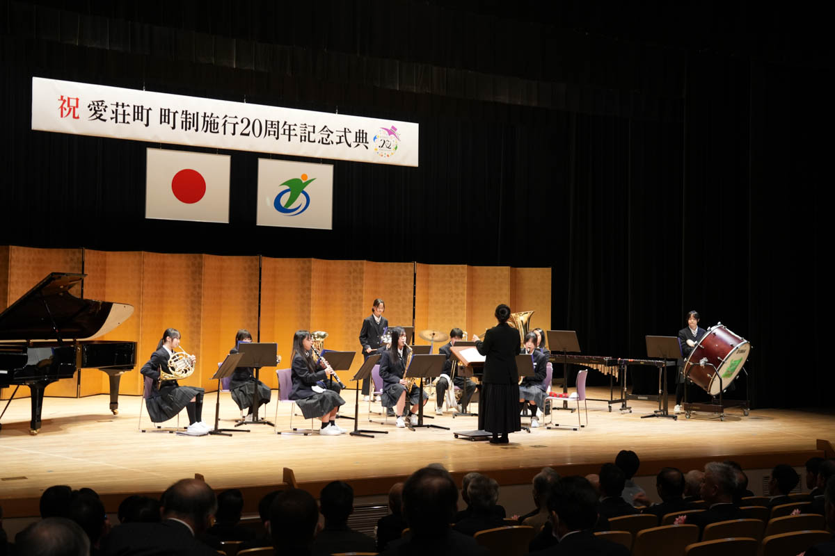 「愛荘町町制施行20周年記念式典」が11月23日、秦荘ハーティーセンター(愛荘町島川)で開かれた。