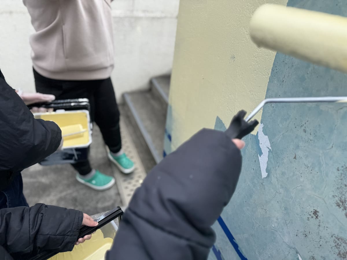 ローラーなどの道具は地域の塗装屋「真心塗家」からの提供