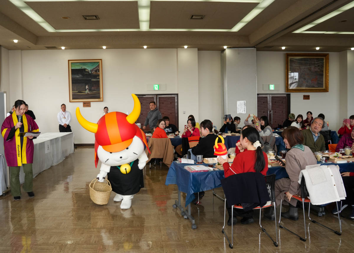 彦根市のキャラクター「ひこにゃん」によるおもてなしイベント「ひこにゃんディナーショー」が2月1日、彦根商工会議所(彦根市中央町)大ホールで開催された。