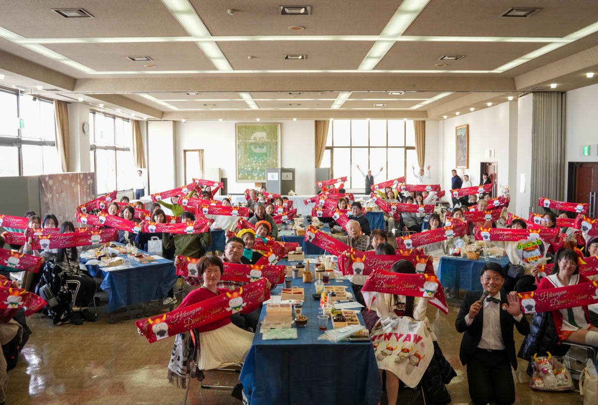 彦根市のキャラクター「ひこにゃん」によるおもてなしイベント「ひこにゃんディナーショー」が2月1日、彦根商工会議所(彦根市中央町)大ホールで開催された。