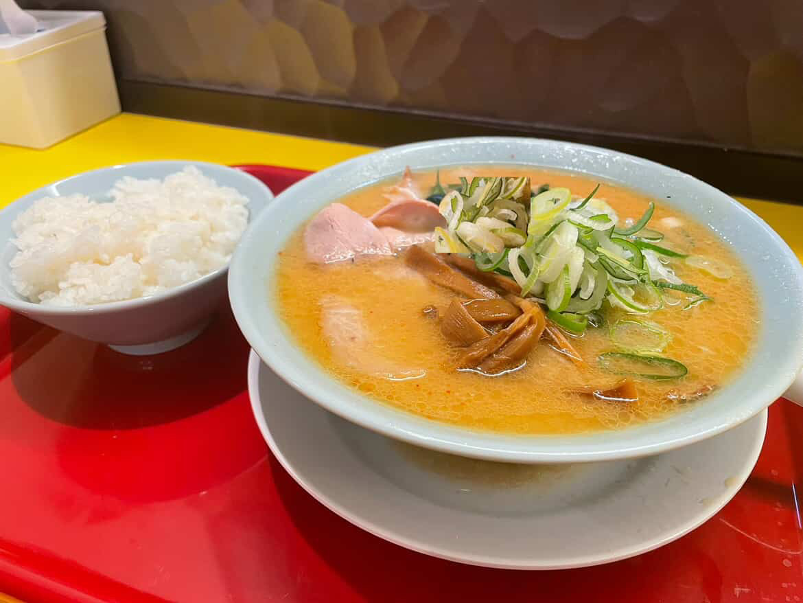 全てのラーメンにご飯が無料でつく
