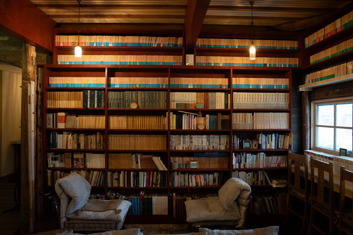 館内には約5500冊の書籍が並び、自由に手に取り読むことができる=文豪カフェ