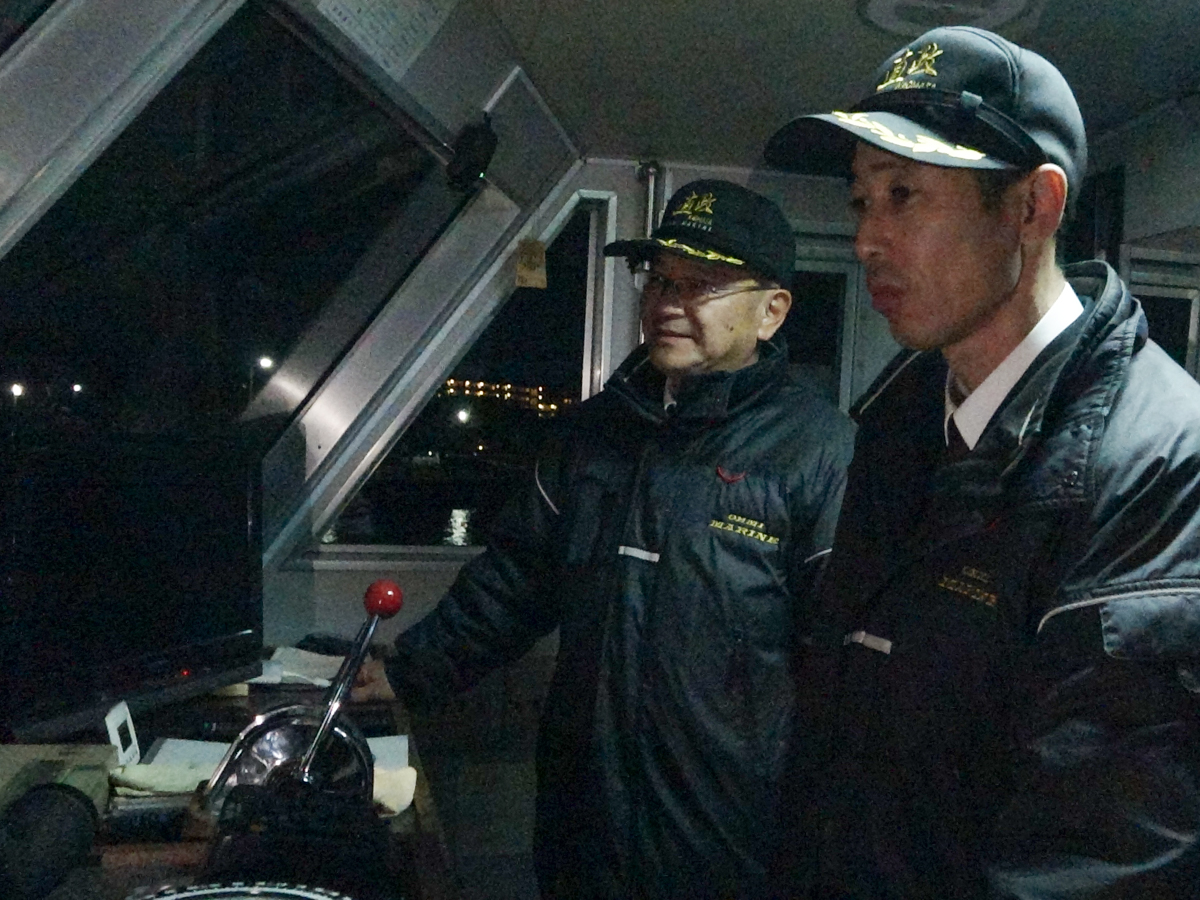 船長の妻鹿貴志さん(手前右)と船員の亀田進さん(奥左) ※安全を確保した上で撮影しています
