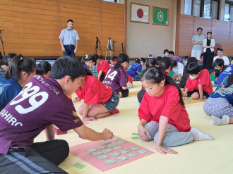 「第1回五色百人一首彦根大会」が9月28日、彦根市武道場(彦根市京町2)で開催され、約60人が参加した。