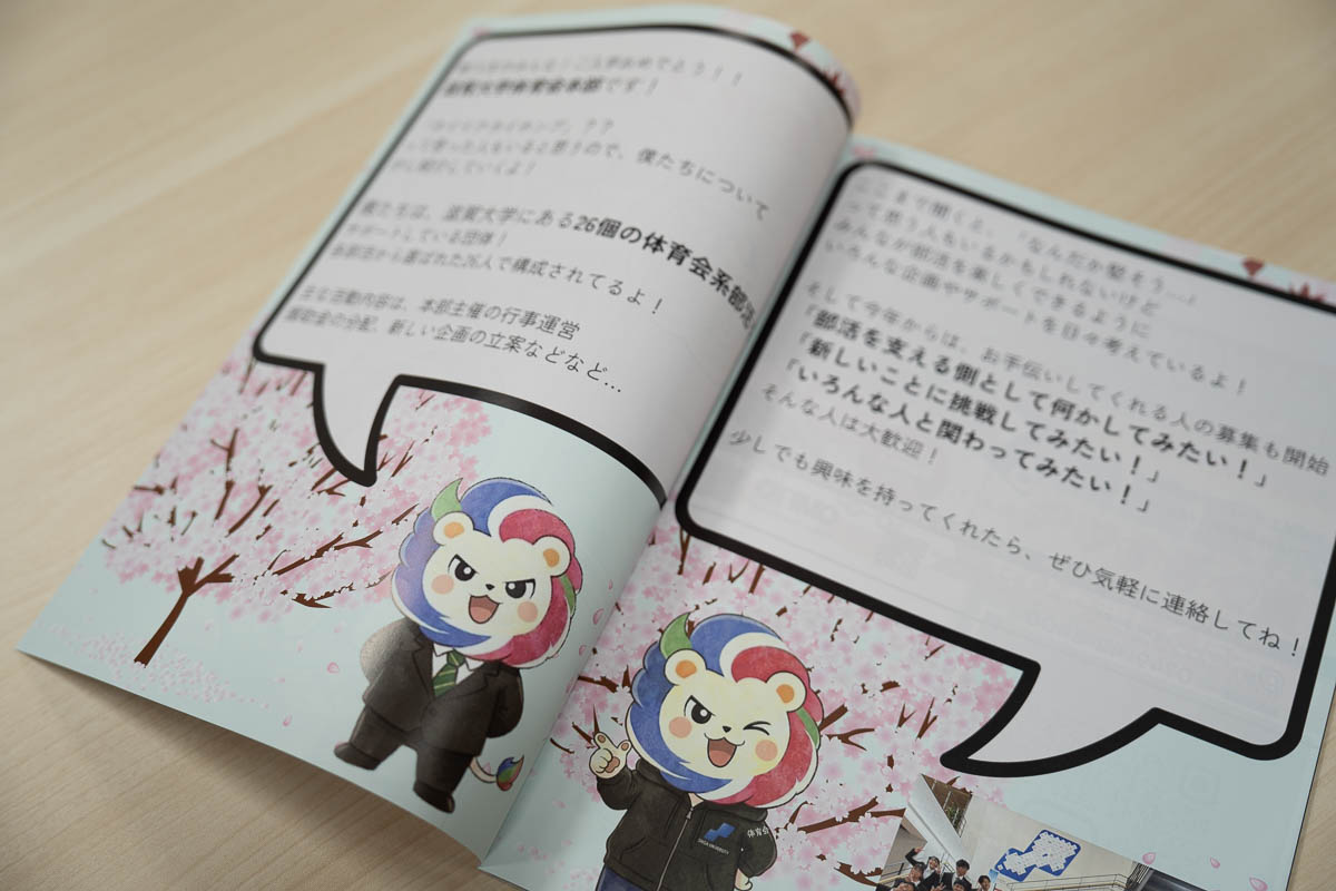 滋賀大学体育会本部(彦根市馬場1)の学生が、彦根市内の飲食店やサービス店を紹介するフリーペーパー「陵水プラス!!」を自主制作し、4月7日の新入生オリエンテーションで約600人に配布した。